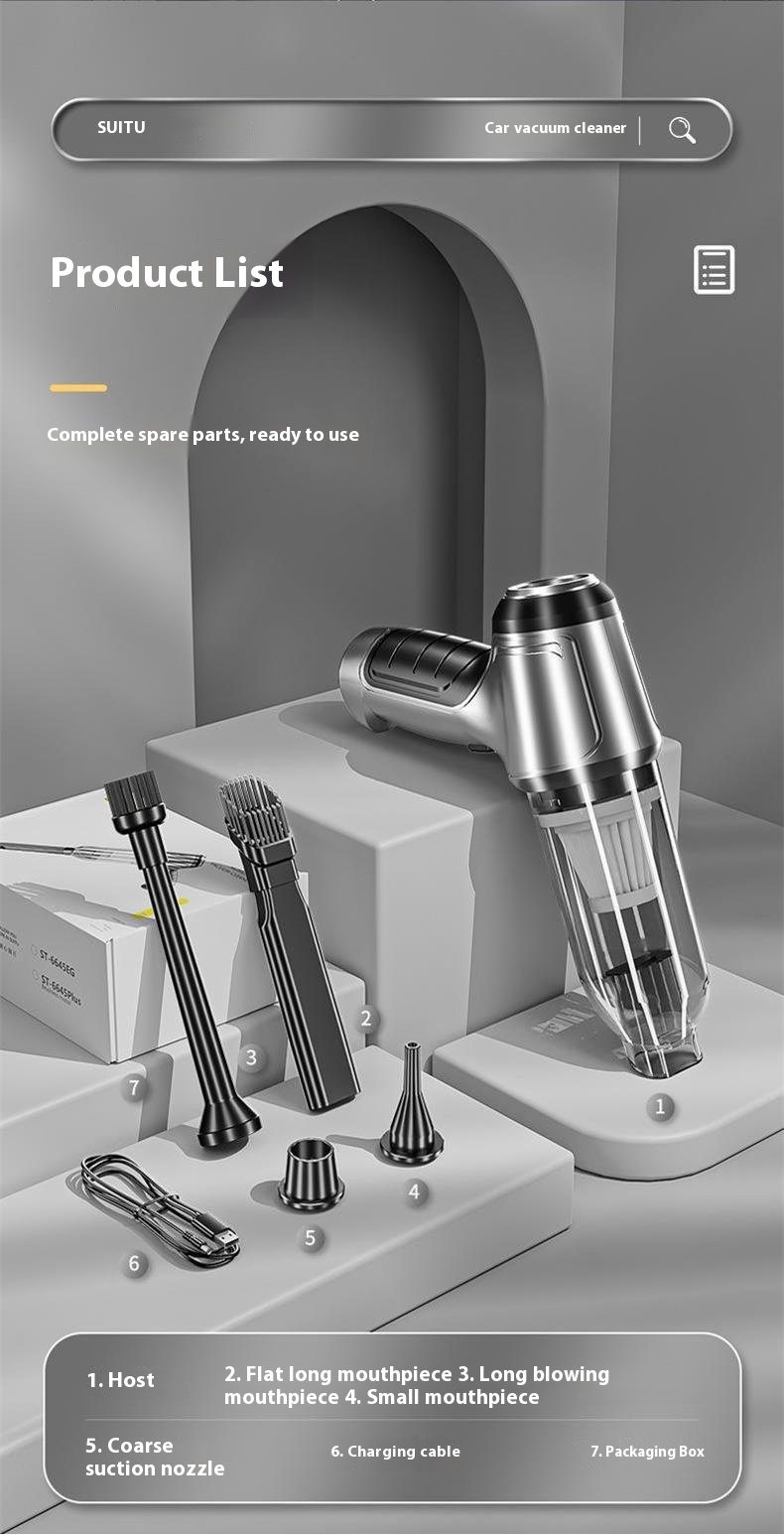 Main unit × 1pc + Flat long nozzle × 1pc + Long nozzle × 1pc + Small nozzle × 1pc + Thick nozzle × 1pc + Charging cable × 1pc + Packing box × 1pc